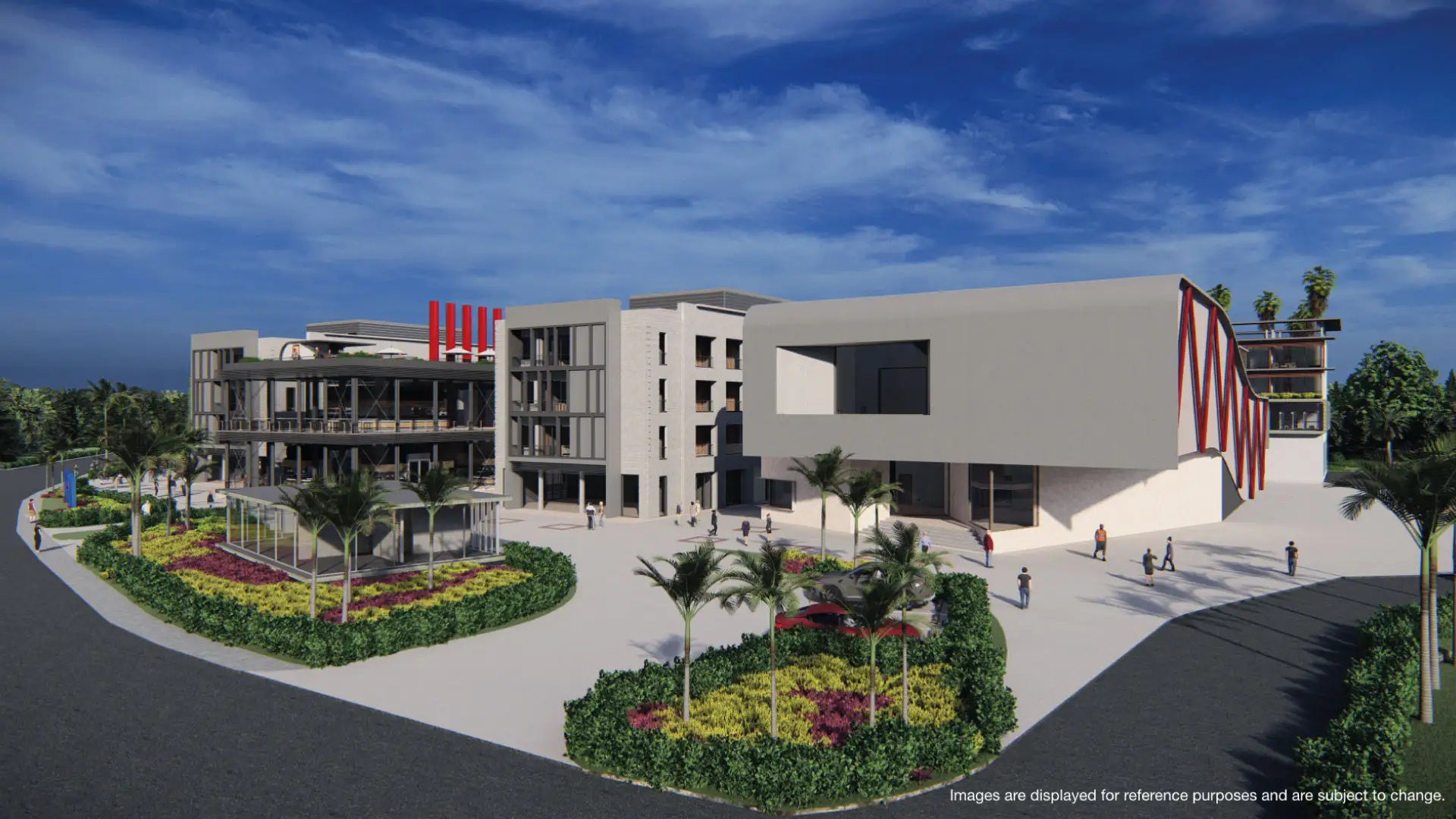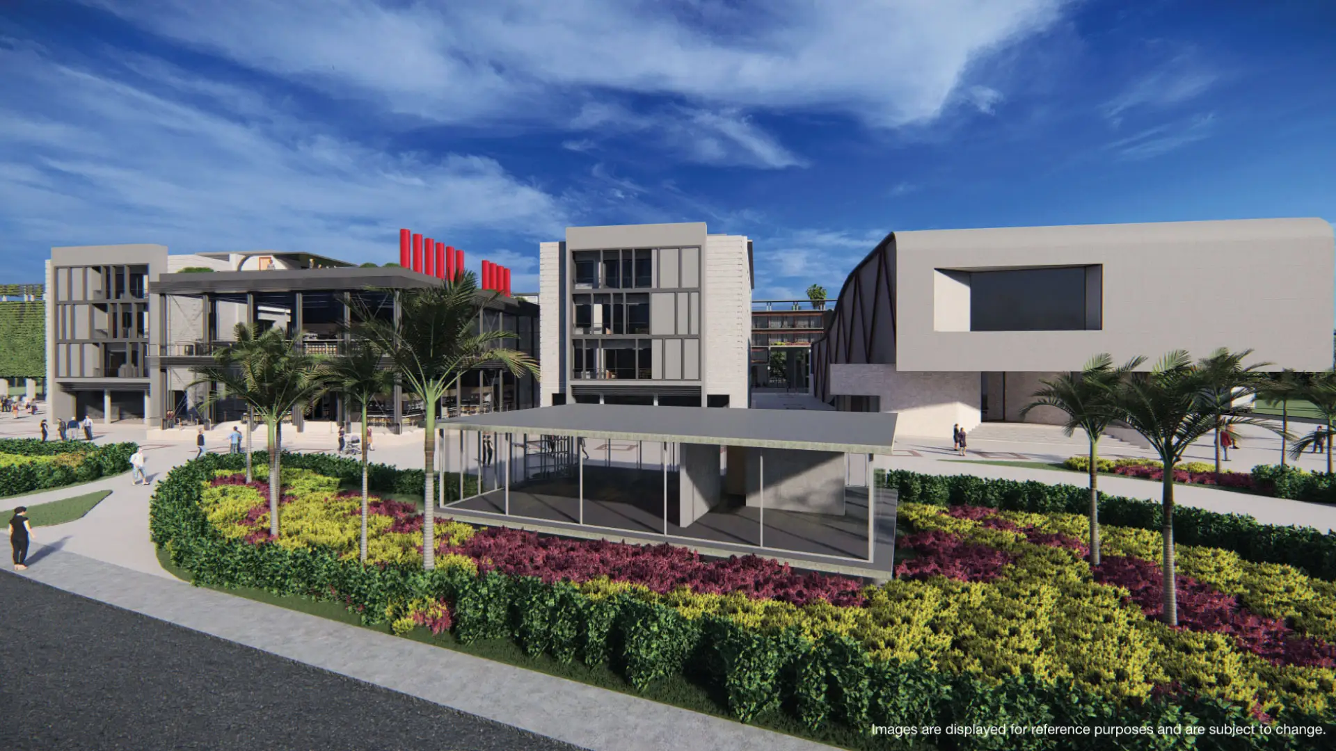 Landscaped gardens and artistic murals